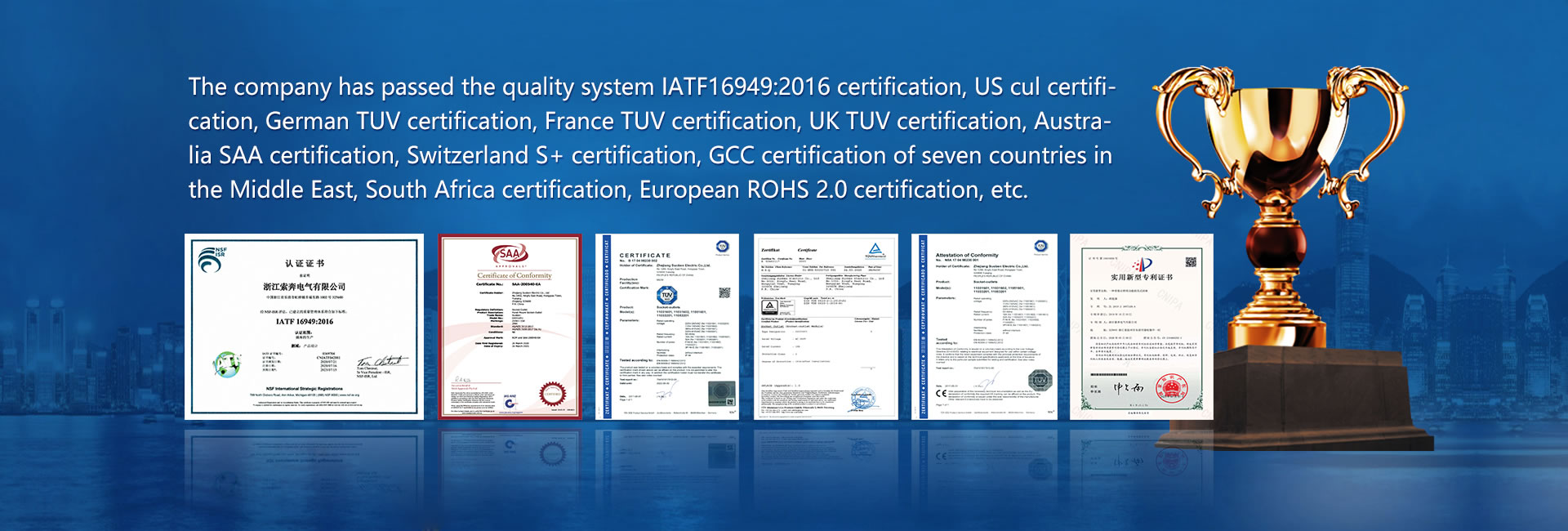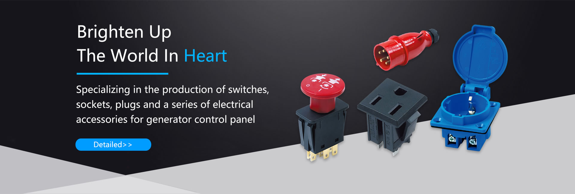 Specializing in the production of switches, sockets, plugs and a series of electrical accessories for generator control panel. There are 19 product series, Contain: Automotive specific socke、Mower switch、Bayonet socket、Anti dropping plug and socket、German IP44, IP54 socket、Australian IP44 socket、French IP44 socket、British IP44 socket、Brazil IP44 socket、Israel IP44 socket etc.