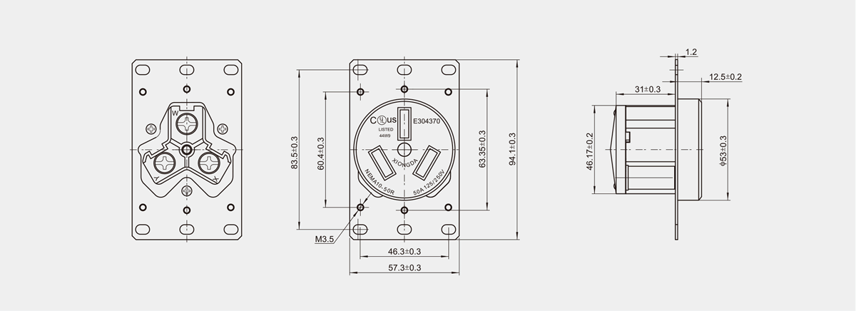 美式三孔插座NEMA10-50R UL 所屬分類:美式系列 > 工業(yè)插頭、插座 13868759177 / 13868895688 / 13736999786 13868759177@163.com 聯(lián)系我們 技術(shù)參數(shù) 1、額定值:125V/250VAC 50A; 2、接觸電阻:R1≤50MΩ; 3、絕緣電阻:R2≥500MΩ; 4、耐電壓:AC2500V(50-60Hz); 5、插拔壽命:20000次以上;